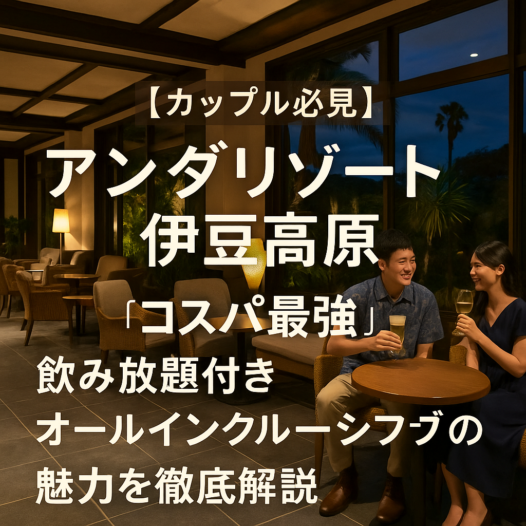 静岡県伊東市の「アンダリゾート伊豆高原」は、飲み放題付きオールインクルーシブでカップルに大人気!館内の魅力やリアルな口コミ、アクセス情報まで徹底解説。コスパ重視の方にもおすすめのリゾートホテルです。
